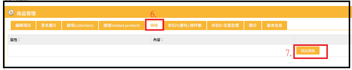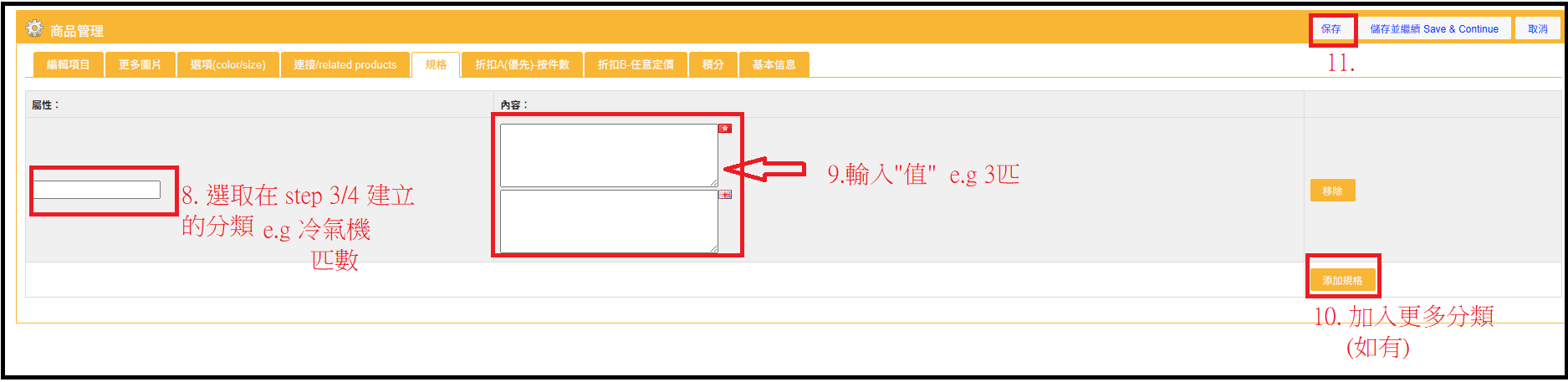 步驟3a - 新增商品 - 為商品加入“規格”值 (attribute)