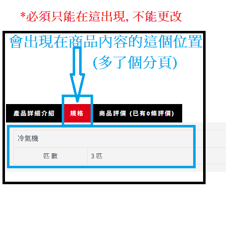 Tips: 一般不建議用這功能, 強烈建議, >>>>> 直接將規格資料輸入到商品詳細介紹內 (因這最快、最簡單、日後修改也較快較容易).