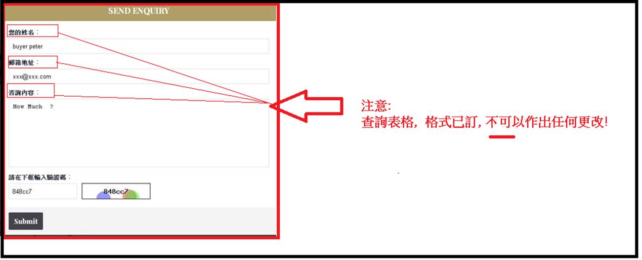 客人填寫的“查詢表格”欄位/標題, 乃系統固定, 不設任何更改 (固定: