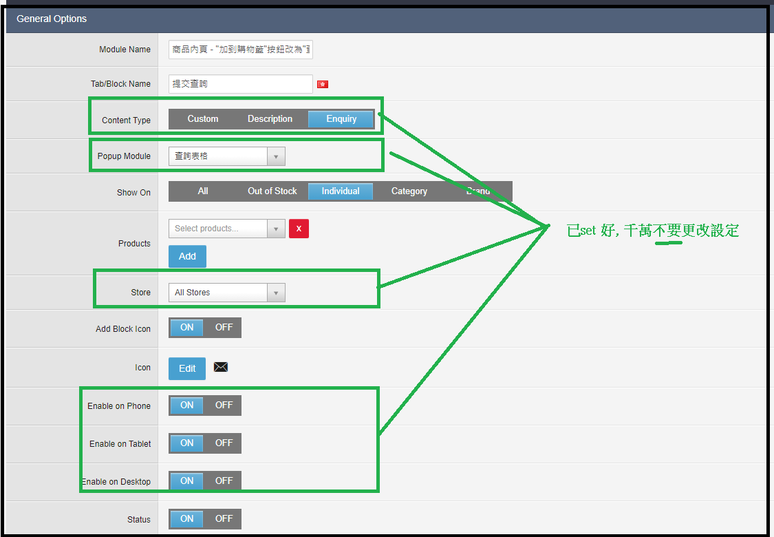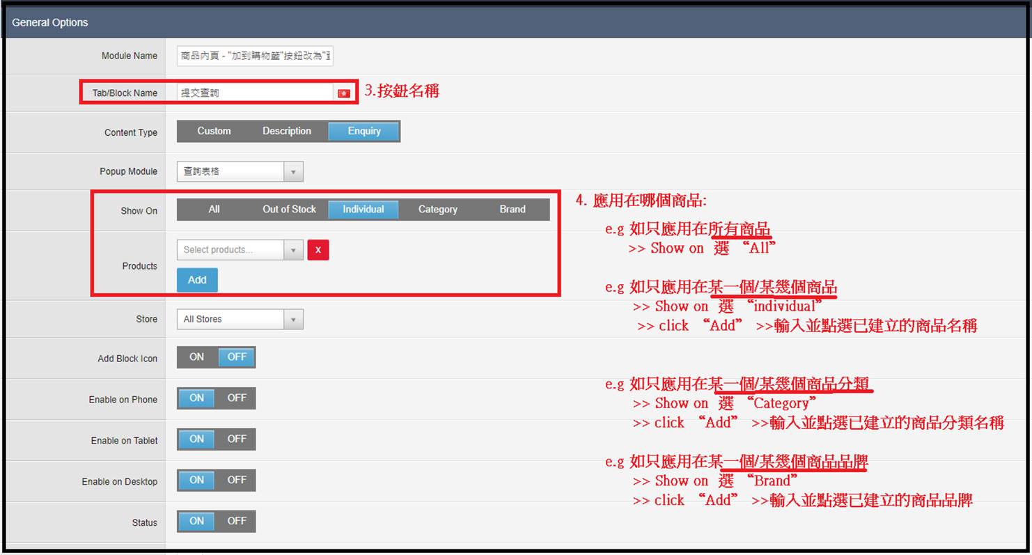 更多相關設置: (1) 如想不出現$xxx (必讀:, 一但套用, 所有商品都不顯示價格值 (不設只套於個別分類/個別商品) )
