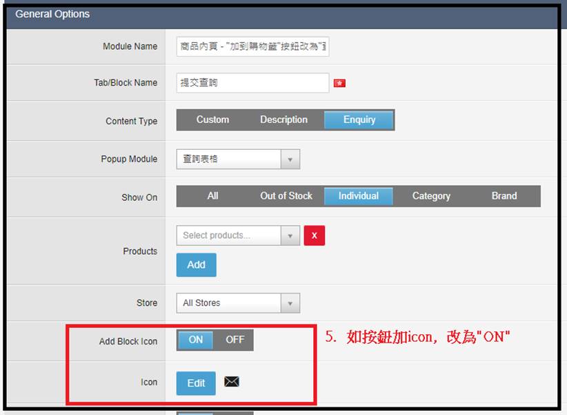 商品“ 提交查詢” 按鈕 ( 取代“加入購物車” 按鈕)