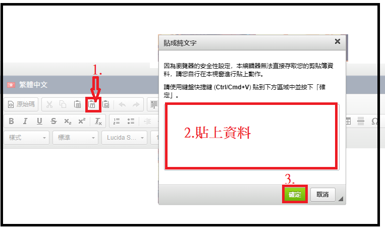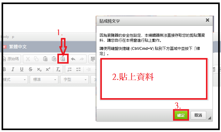 Microsoft word” copy來的資料 , 直接paste (貼) 上 “網頁圖文編輯器”內,